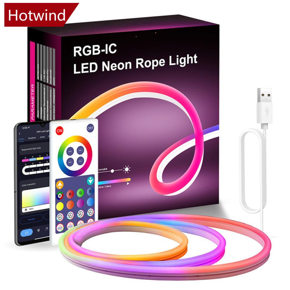 HOTWIND Fita LED 3m USB 5V RGBIC De Luz De Néon Tuya Wifi Controle Remoto Inteligente Música Colorida Home TV Backlight