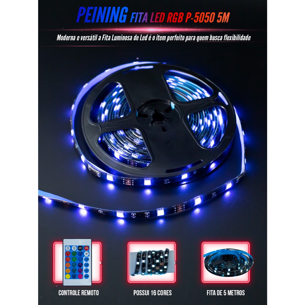 Fita LED de TV 5M-16 Cores RGB com Controle