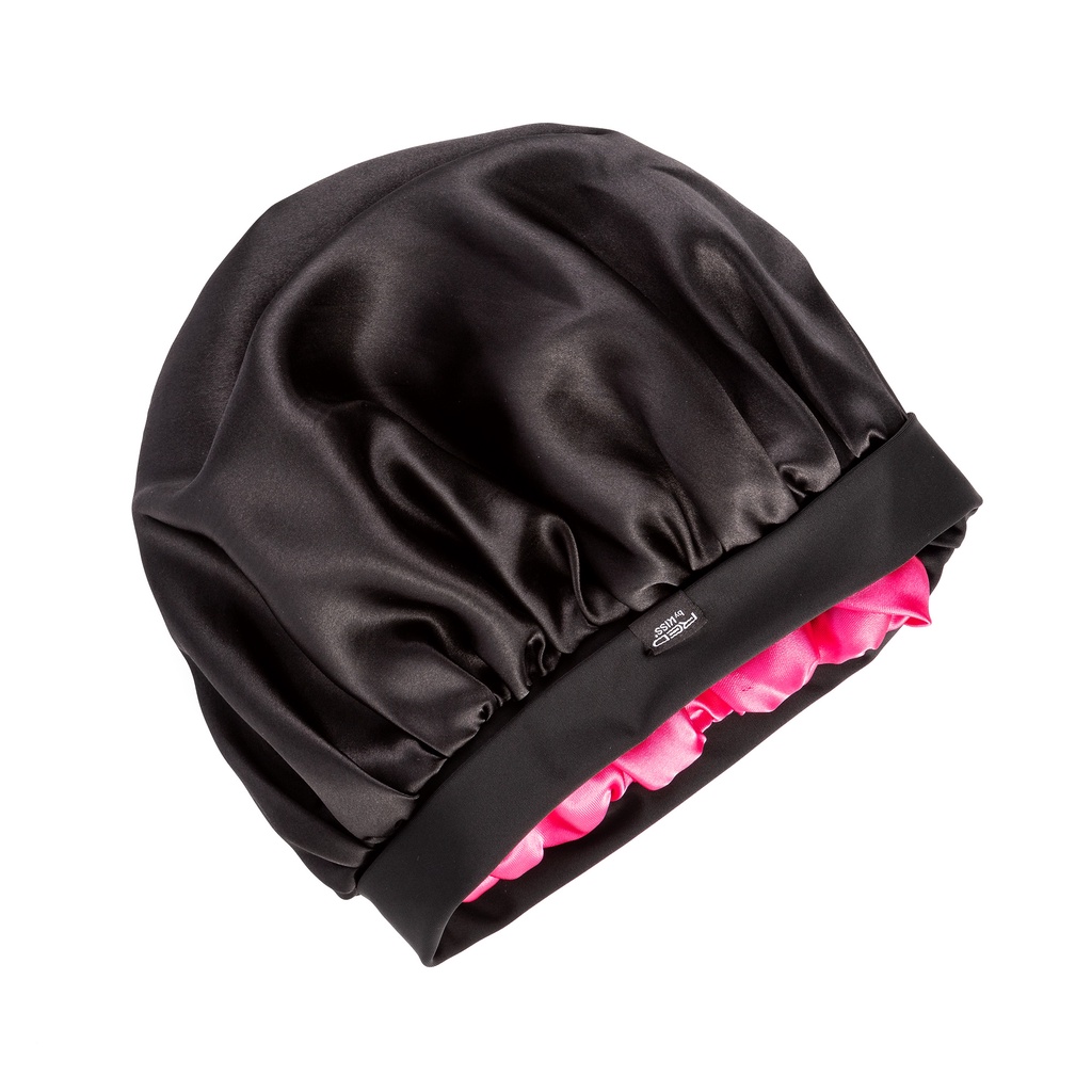 Touca de Cetim Dupla face Tamanho G Preto e Rosa com regulador anti frizz Evita Embaraço dos cabelos