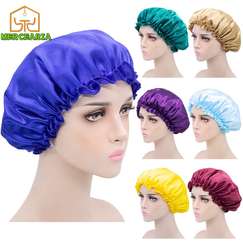 Touca de Cetim Dupla Face Ajustável Touca de Cetim Com Elástico Touca de Natação Reutilizável de Touca Impermeável