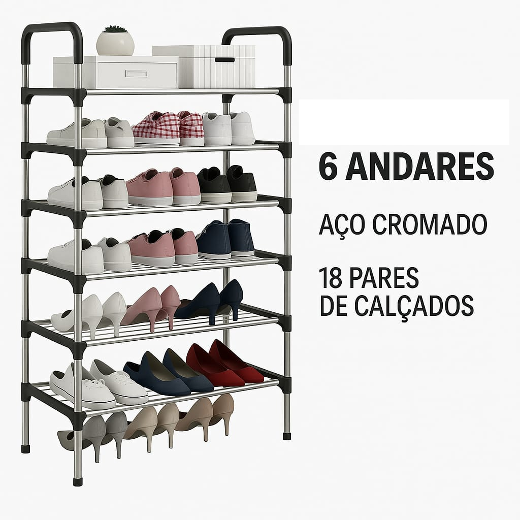 Sapateira Calçados Prateleira 6 Andares Organizador Multiuso 18 Pares De Sapatos Calçados Aço Cromado Luxo Desmontável