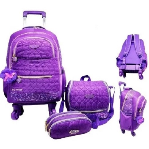 Kit Mochila Rodinha Juvenil Feminina Escolar 3 Peças