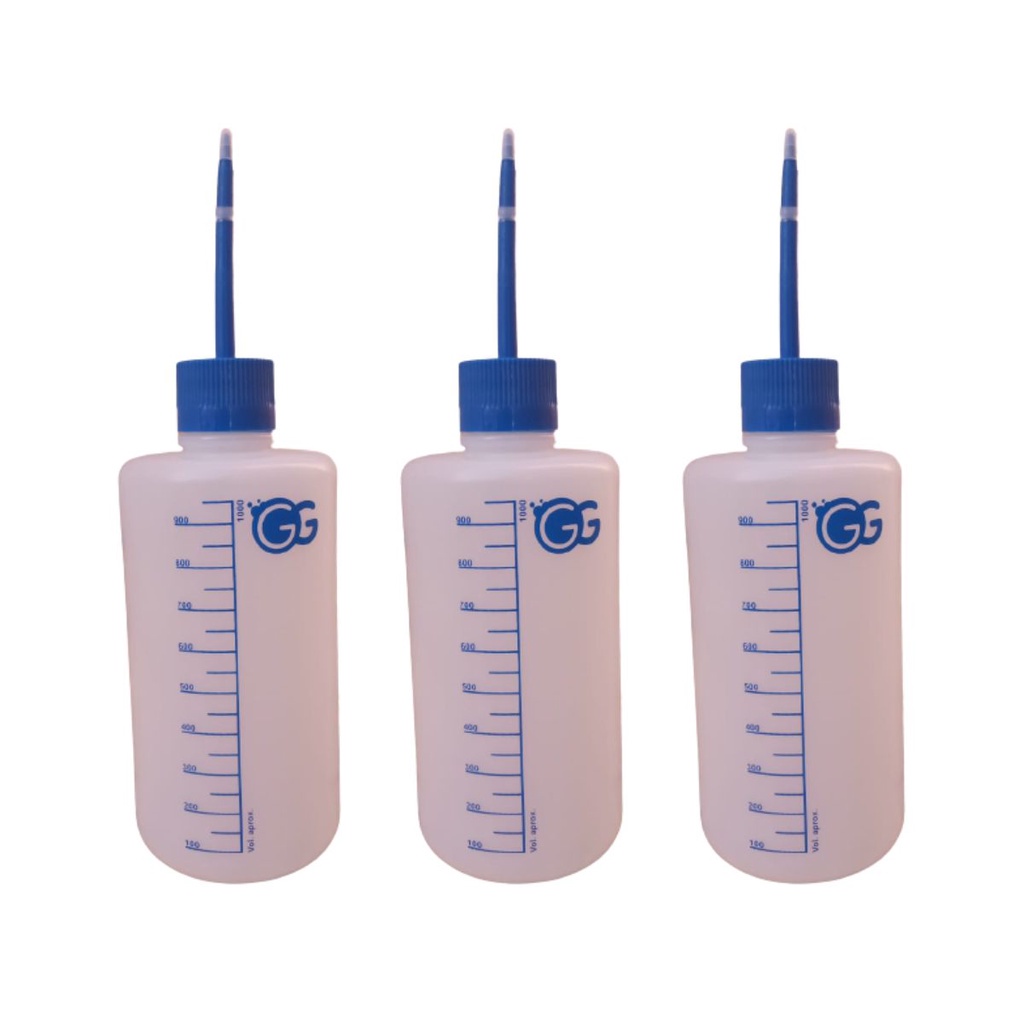 Kit 03 Pissetas Plástica Garrafa Almotolia Frasco com Graduação 125ml a 1000ml unidade Bico Reto Verde/Azul