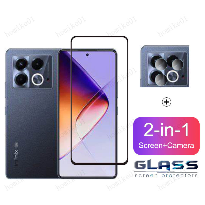 2 Em 1 Película De Vidro Infinix Note 40 5G Pelicula Temperado Protetor De Tela De Cobertura Total Para Infinix Note 30 40 Pro+ Hot 40i 30i 20i 20s 40 30 20 12 11 10 9 Play 4G 9D Película De Proteção De + Lente De Câmera