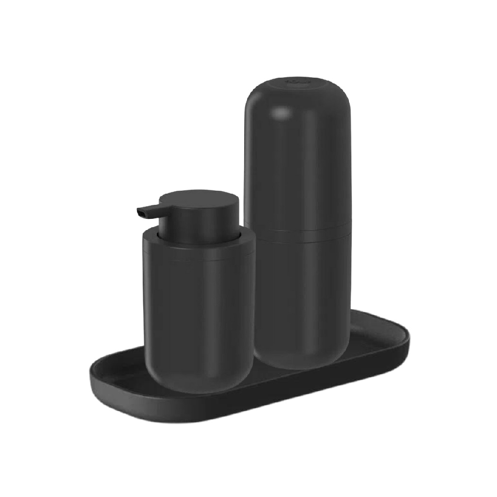 Conjunto Banheiro Kit lavabo 3 peças Bold Porta Escova E Porta Sabonete e Bandeja Preto - Ou