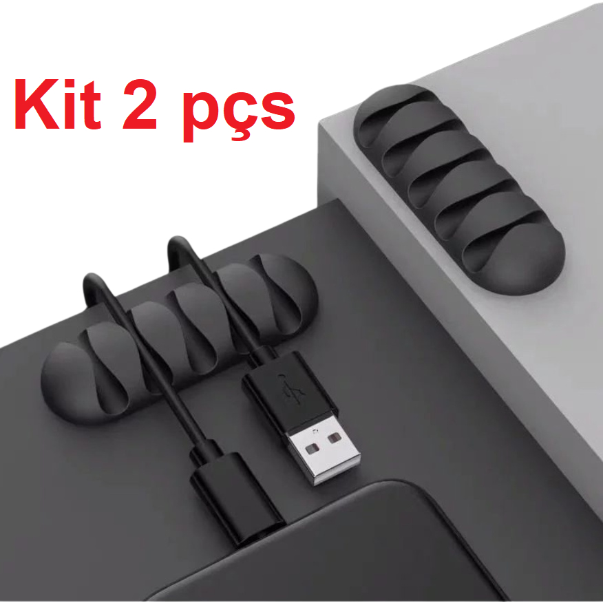 Kit 2 Organizador de Cabos e Fios em Silicone Flexivel 6 Entrada