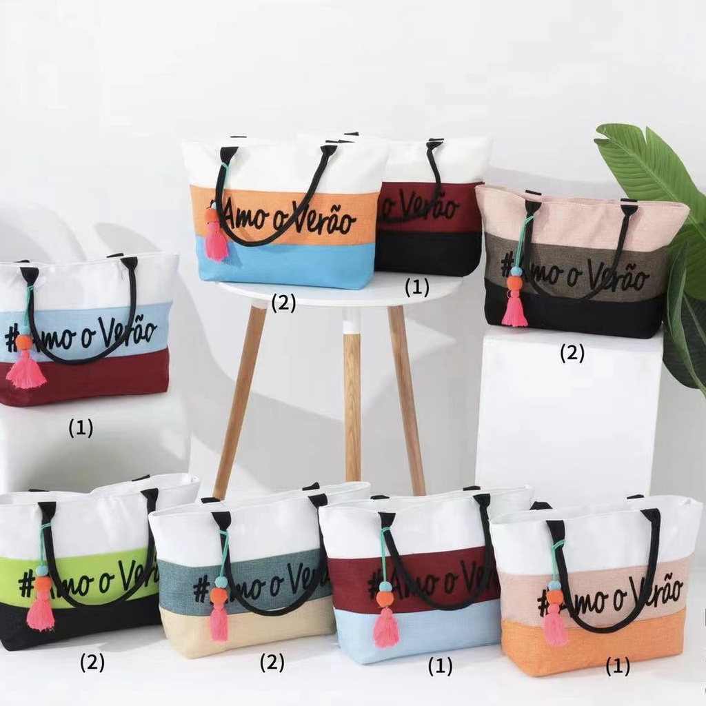 Bolsa De Praia Grande Modelo Tote Tecido Cores Variadas Amo o Verão