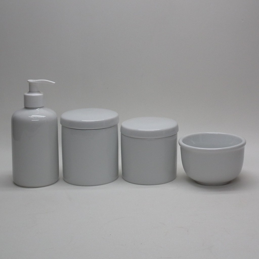 Kit Higiene Potes Porcelana Branca Garrafa 5 peças