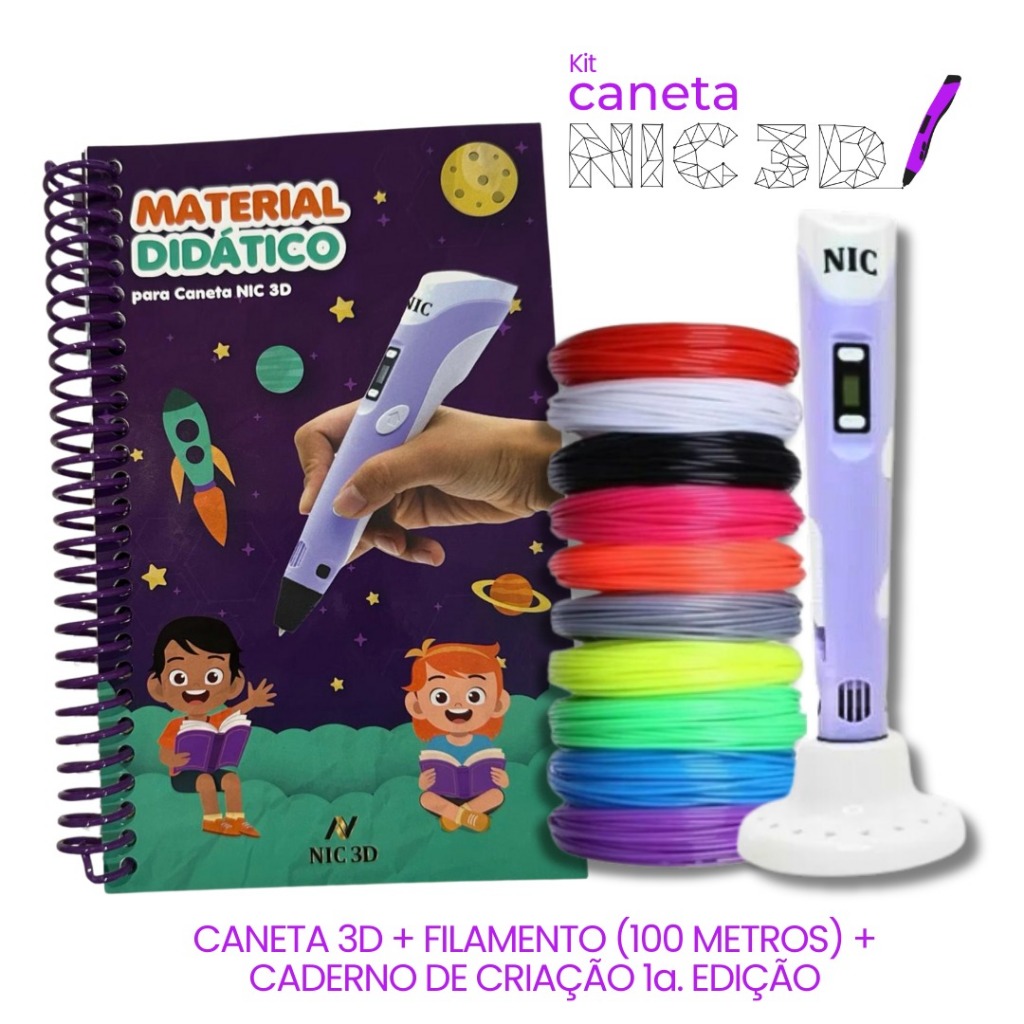 KIT – Caneta 3D + 100 Metros de Filamentos + Caderno 2° Edição - Garantia de 6 meses