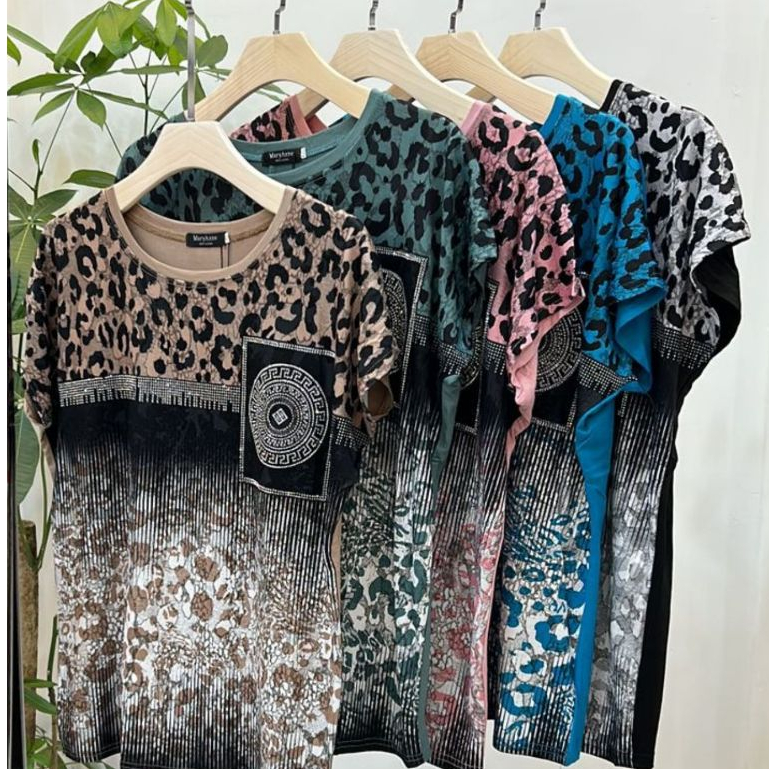 Camiseta estampada com gola redonda, nova blusa casual solta de manga curta elástica para verão-141