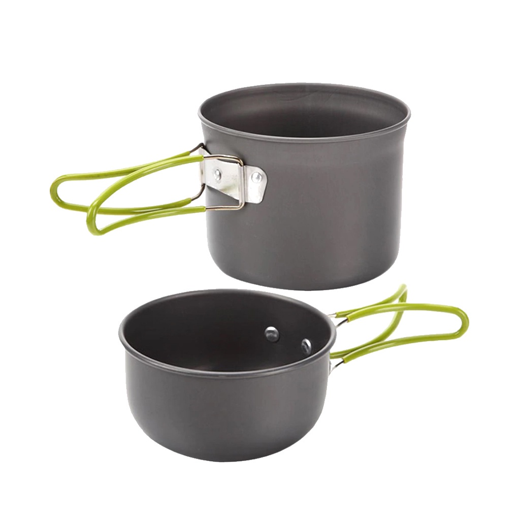 Kit conjunto Panelas Táticas Camping Alumínio 2 Peças Compactas leves Com Pegador de panelas