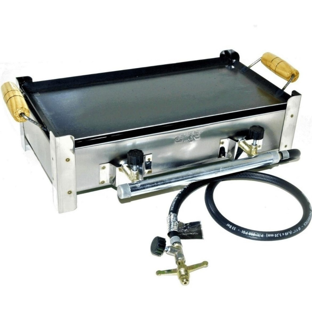 Fogão 2 Bocas Camping Portátil Com Chapa Alta Pressão Semi Industrial Inox Completo PROMOÇÃO