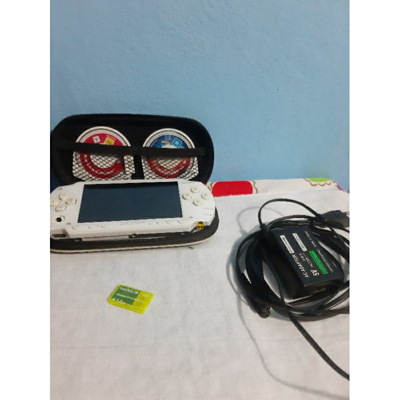 PSP branco versão 3000 mais cartão memória 1 GB e 2 jogos e case preta.