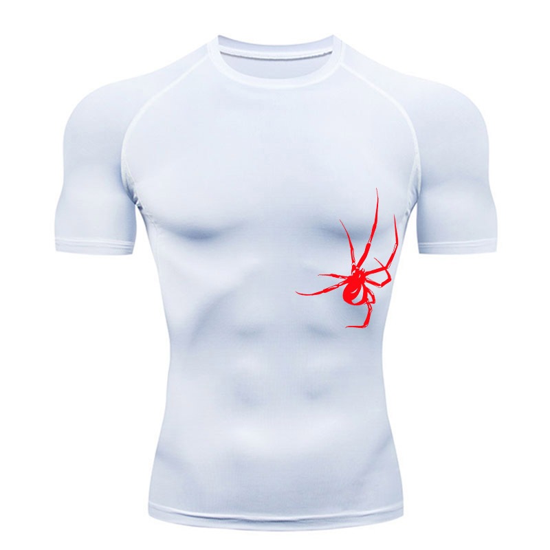 Camiseta De Verão Homem-Aranha Manga Curta Compressão MMA Fitness Quick Dry Casual Black Round Neck Top