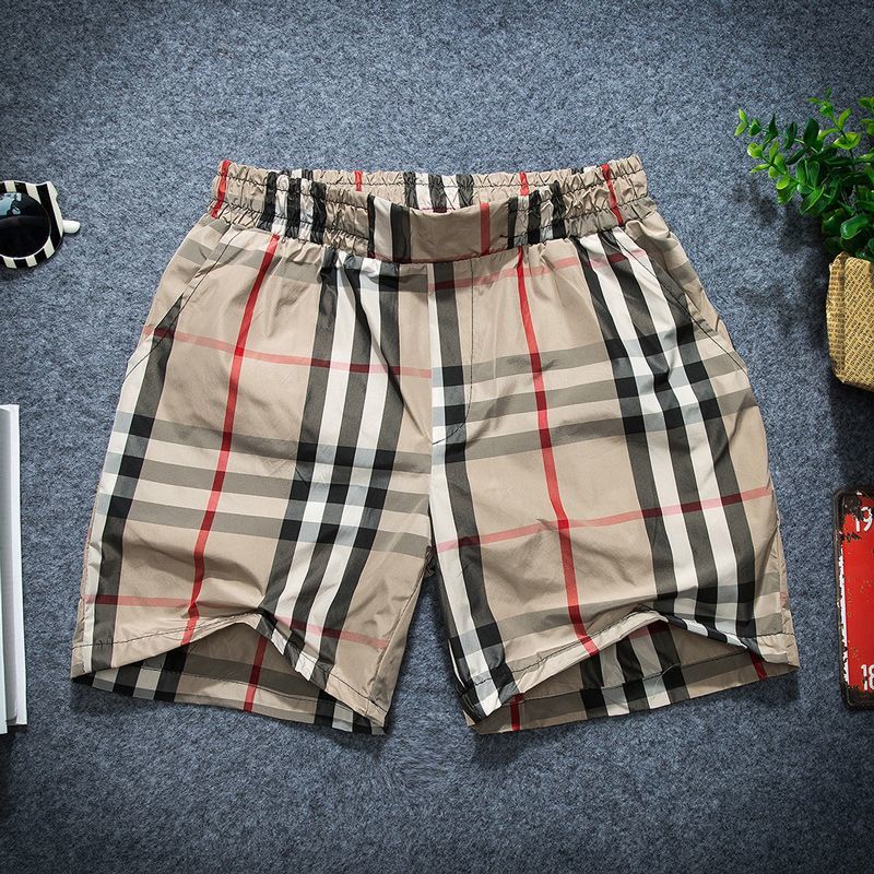 Homens Moda Calças De Cinco Pontos , Listrada Xadrez Confortável E Respirável , Secagem Rápida Praia