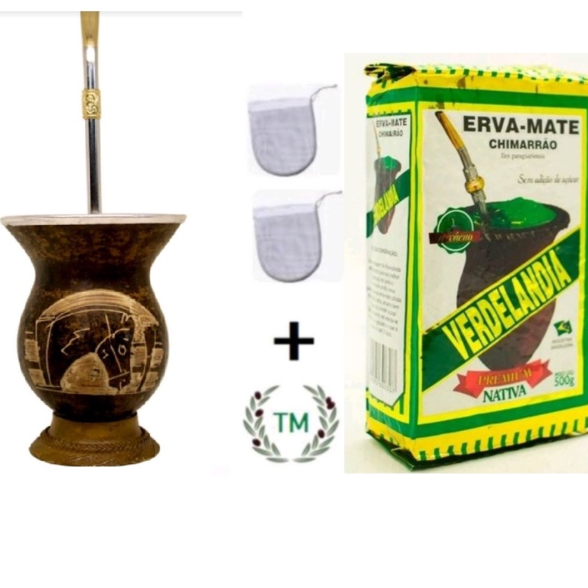 Kit Chimarrão Cuia + Bomba + Filtro + Erva Mate Chimarrão 500 Gramas