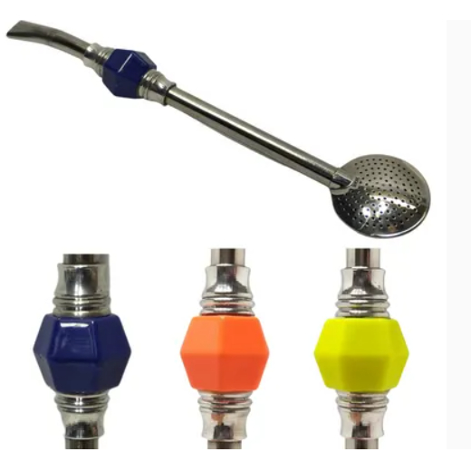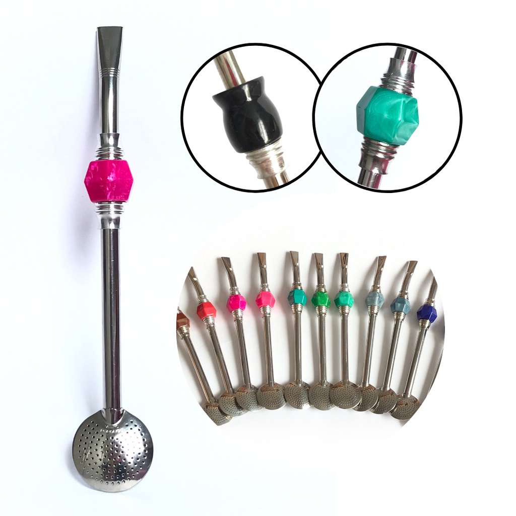 Bomba para Chimarrão Erva Mate 100% Inox Pedra Colorida