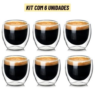 Kit 6 Copos de Vidro Duplo - 80ml copo parede dupla café chá conjunto Copo de vidro Para Café Copo Parede Dupla Sem Alça