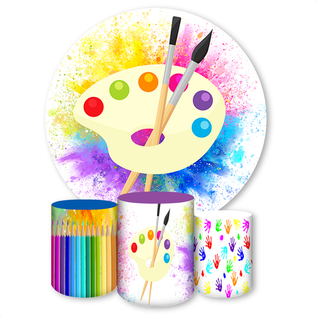 Capa de Painel Redondo + 3 Capas de Cilindro Sublimados Tema Cores