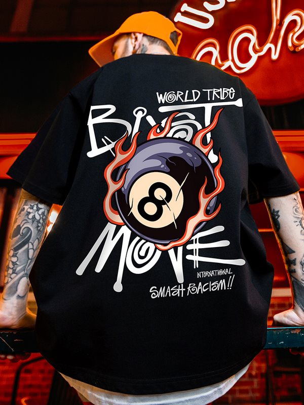 M-5XL Verão Coreano Moda De Rua casual Masculina De Camiseta De Manga Curta De Pescoço Redondo vintage Bilhar Preto 8 design Unisexo Gráfica Preta
