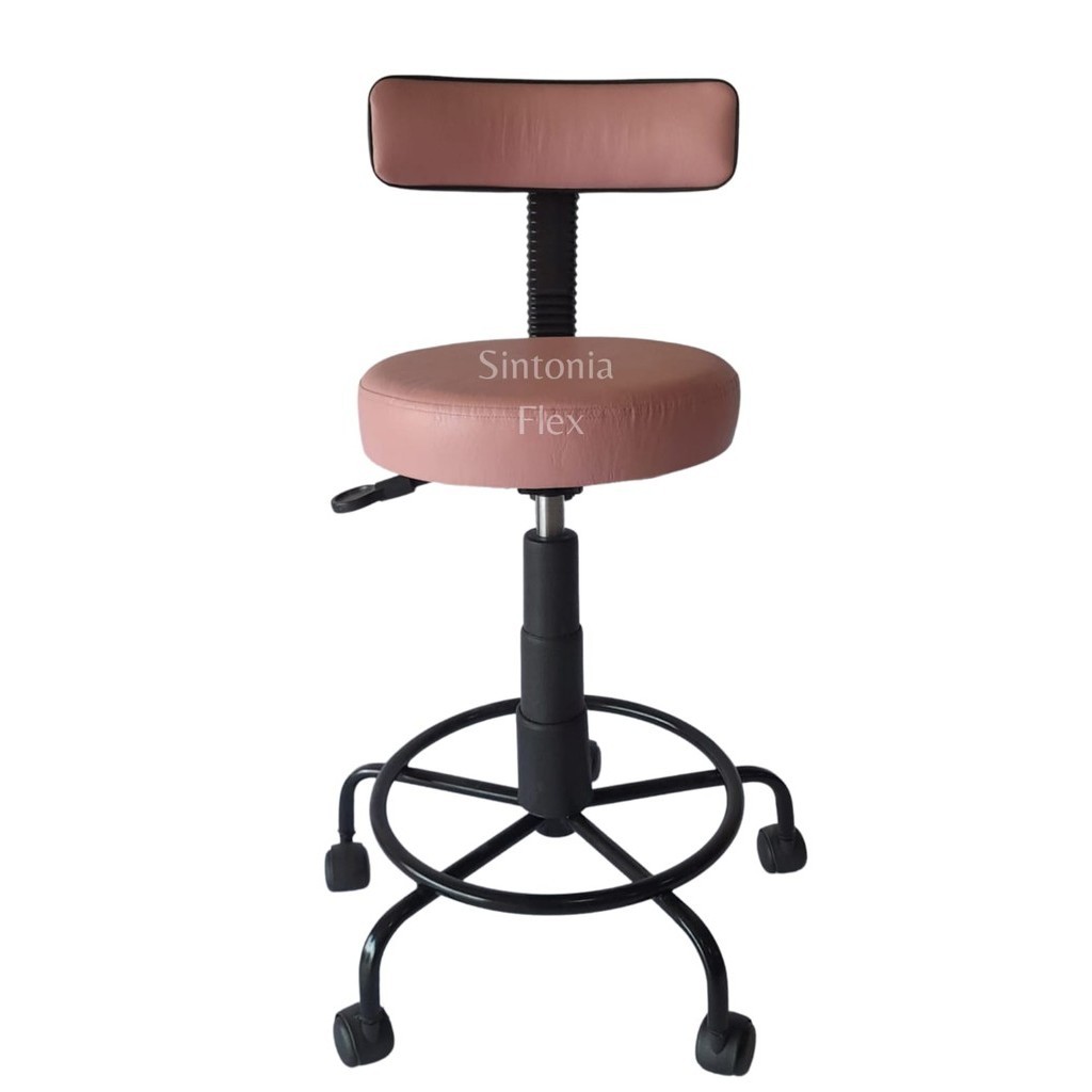 Cadeira Mocho podologo com regulagem de altura estrela de ferro apoio de pé com rodízio corano rosa bebe