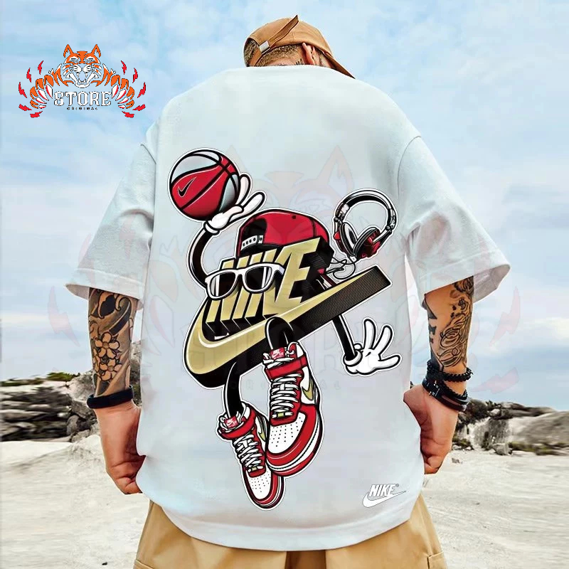 Camiseta Esportiva masculina de verão manga curta moda combina com tudo gola redonda Nike alta qualidade 180g algodão seda fria estampada grande logo
