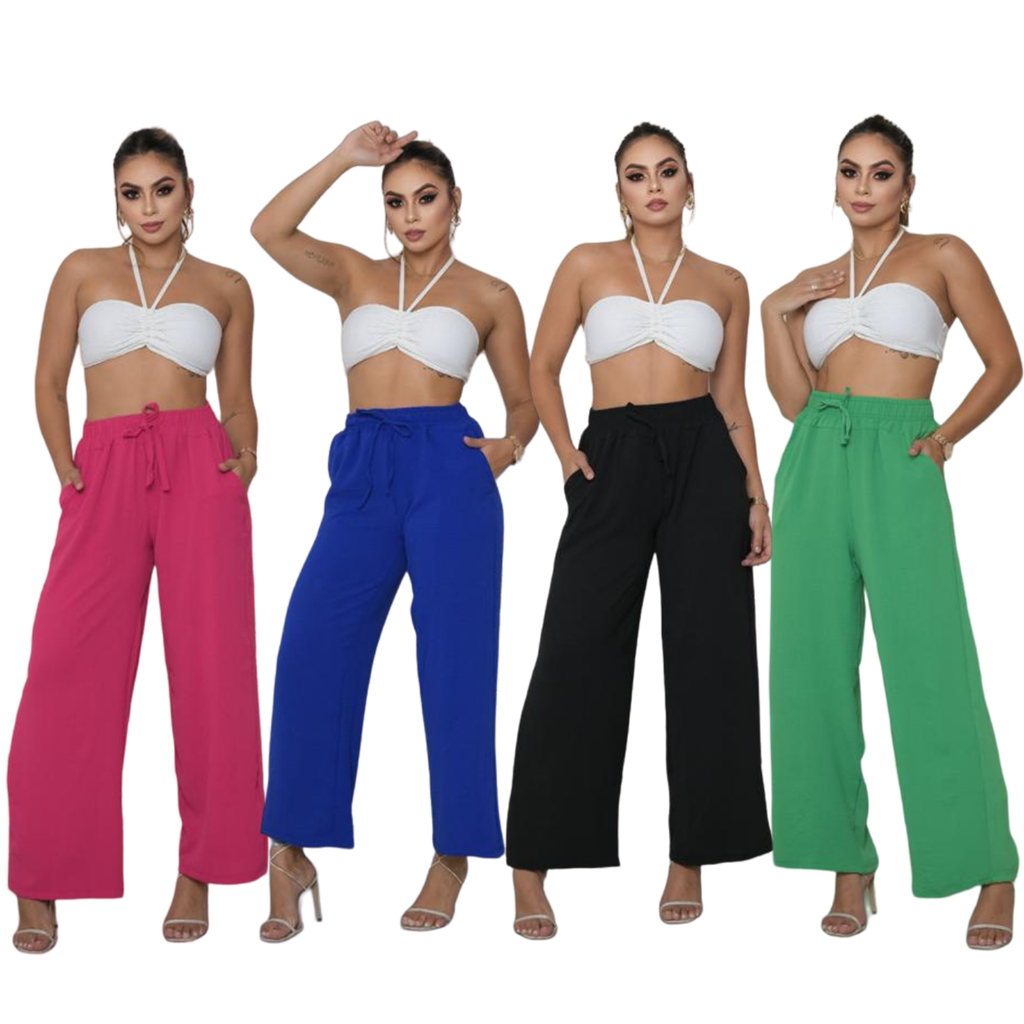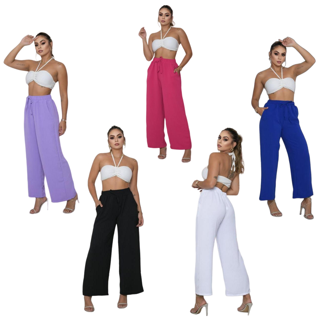 Calça Pantalona Feminina Com Elástico Na Cintura Tecido Duna