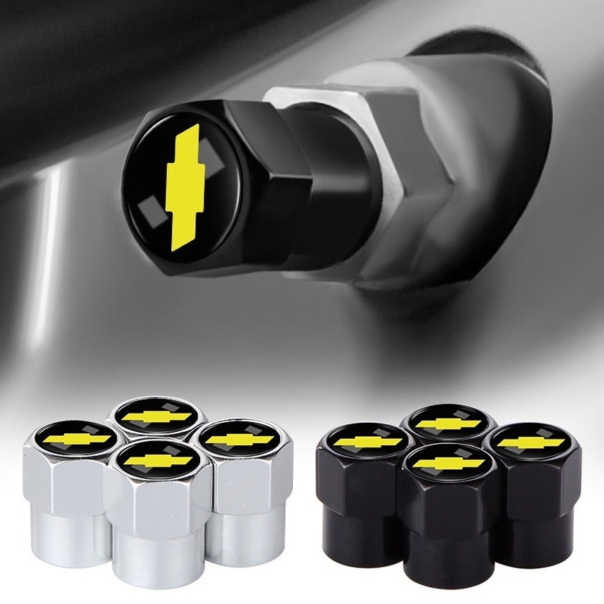 4pçs/Conjunto De Tampas Da Extremidade Do Ar Carro Liga Tipo Parafuso Prata Preto Hexagonal Logotipo Válvula Núcleo Para Chevrolet Personalizar
