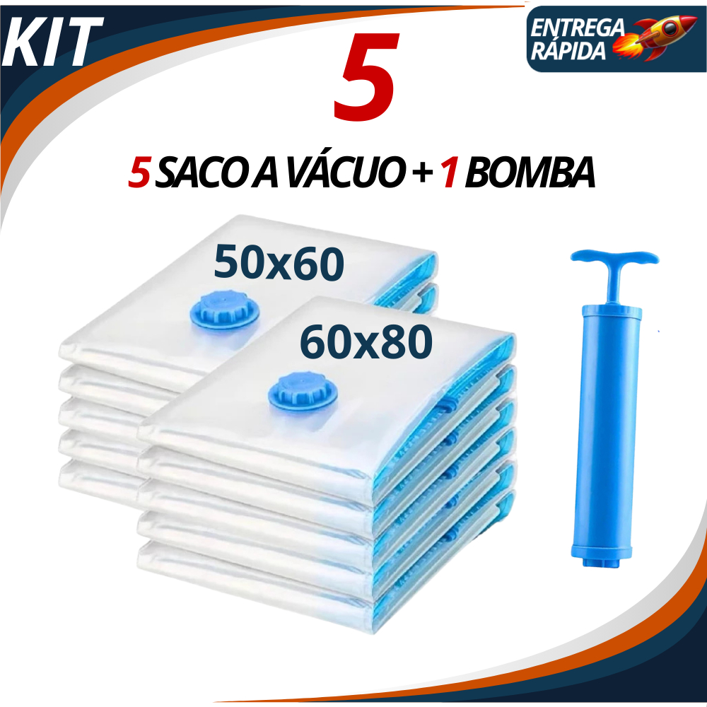 Kit Saco à Vácuo 5 Unidades Vários Tamanhos Guarda Roupa Organização Mala Viagem Limpeza