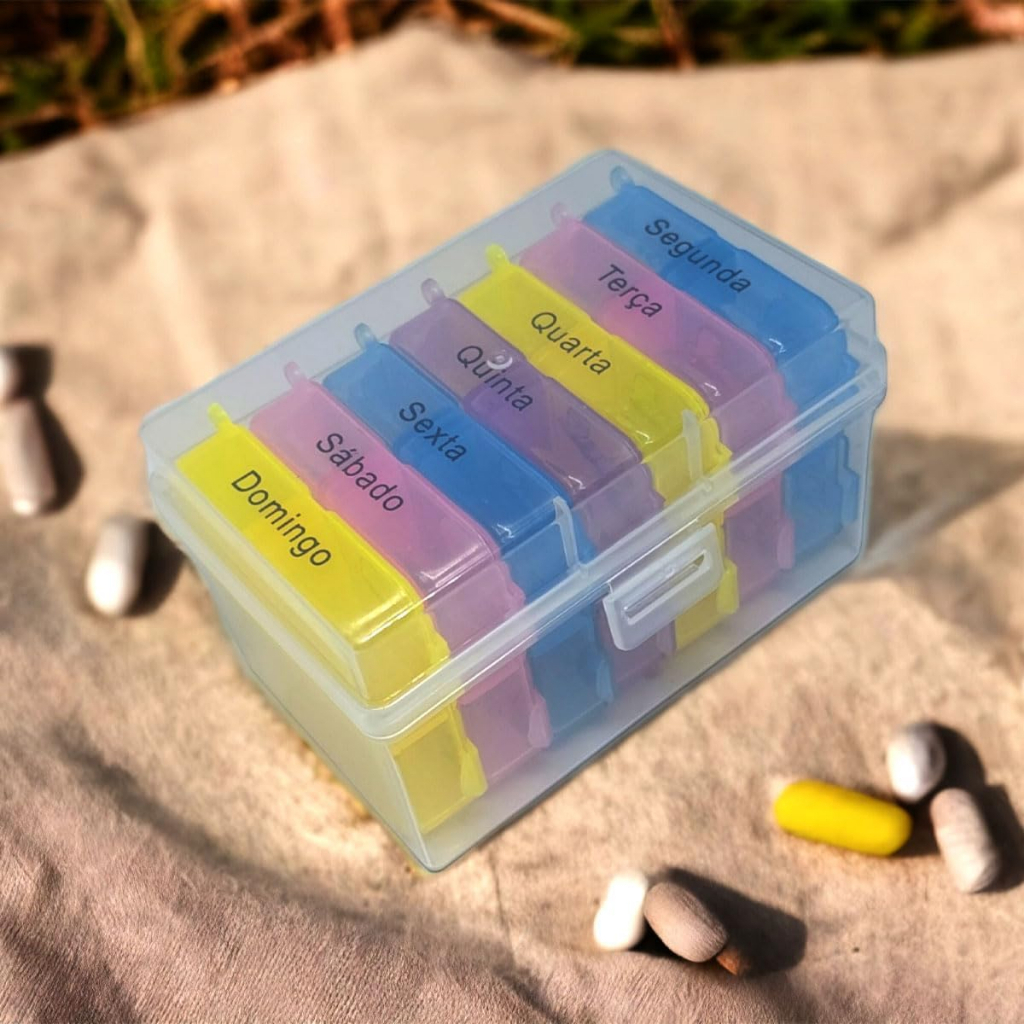Porta Remédios Organizador Comprimidos Semanal com Divisórias 28 compartimentos