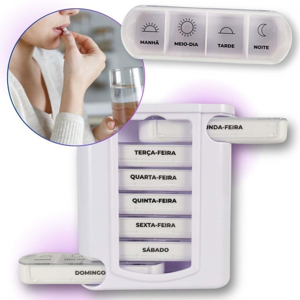 Porta Comprimidos Remédios Suplementos Semanal 4 Divisórias por Dia