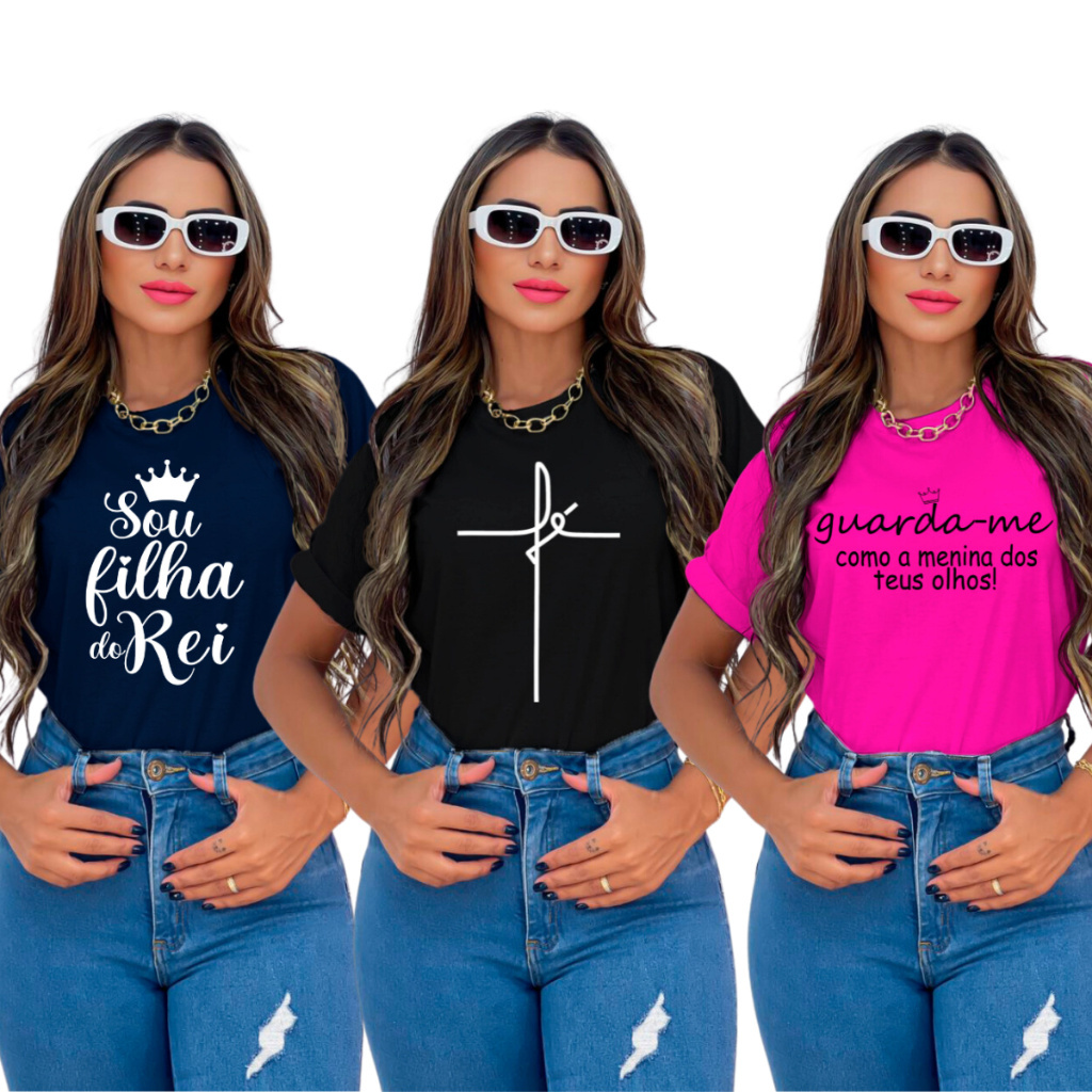 Kit 3 Camiseta T-shirt FEMININA Blusa Leão de Judá – Frases Evangélicas