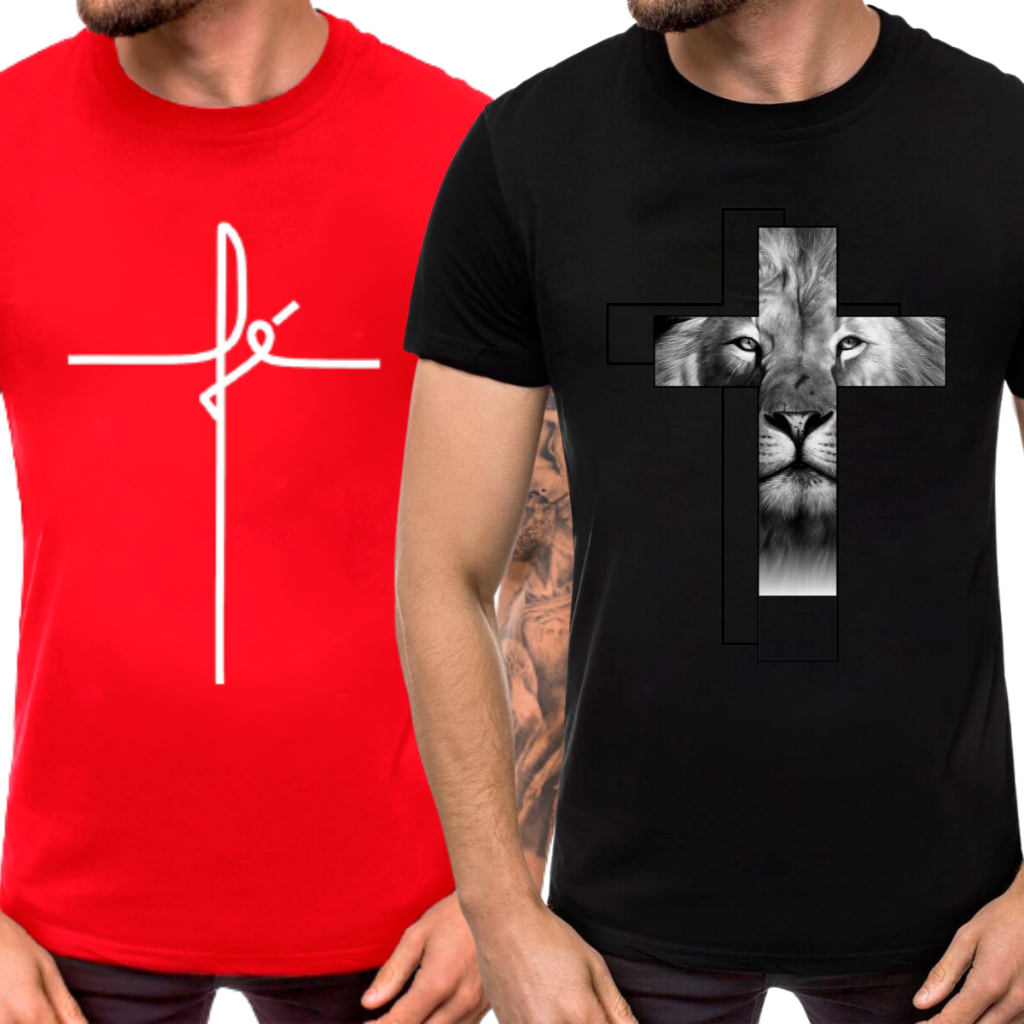 Kit 2 Camiseta T-shirt Masculina Blusa Leão de Judá – Frases Evangélicas