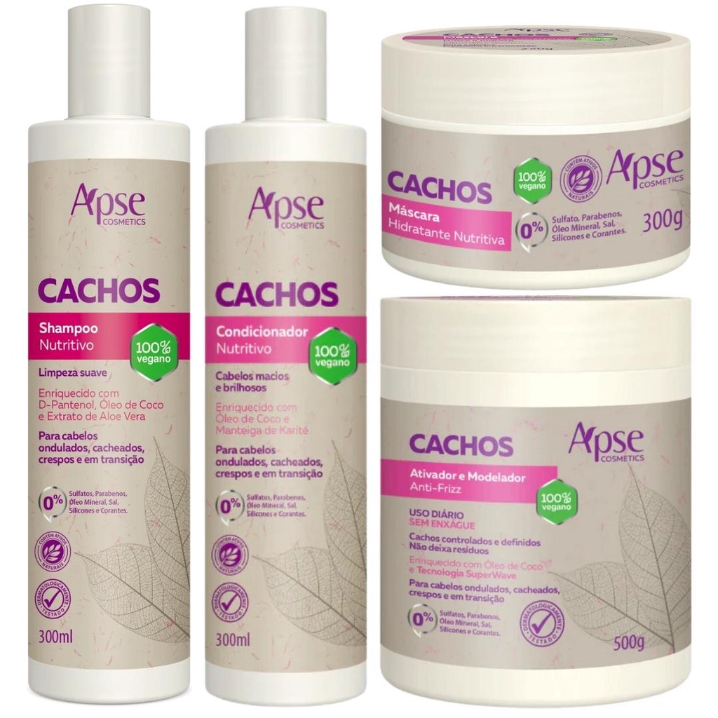 Kit Apse Cachos Shampoo + Condicionador + Mascara + Ativador Cachos Profissional Completo