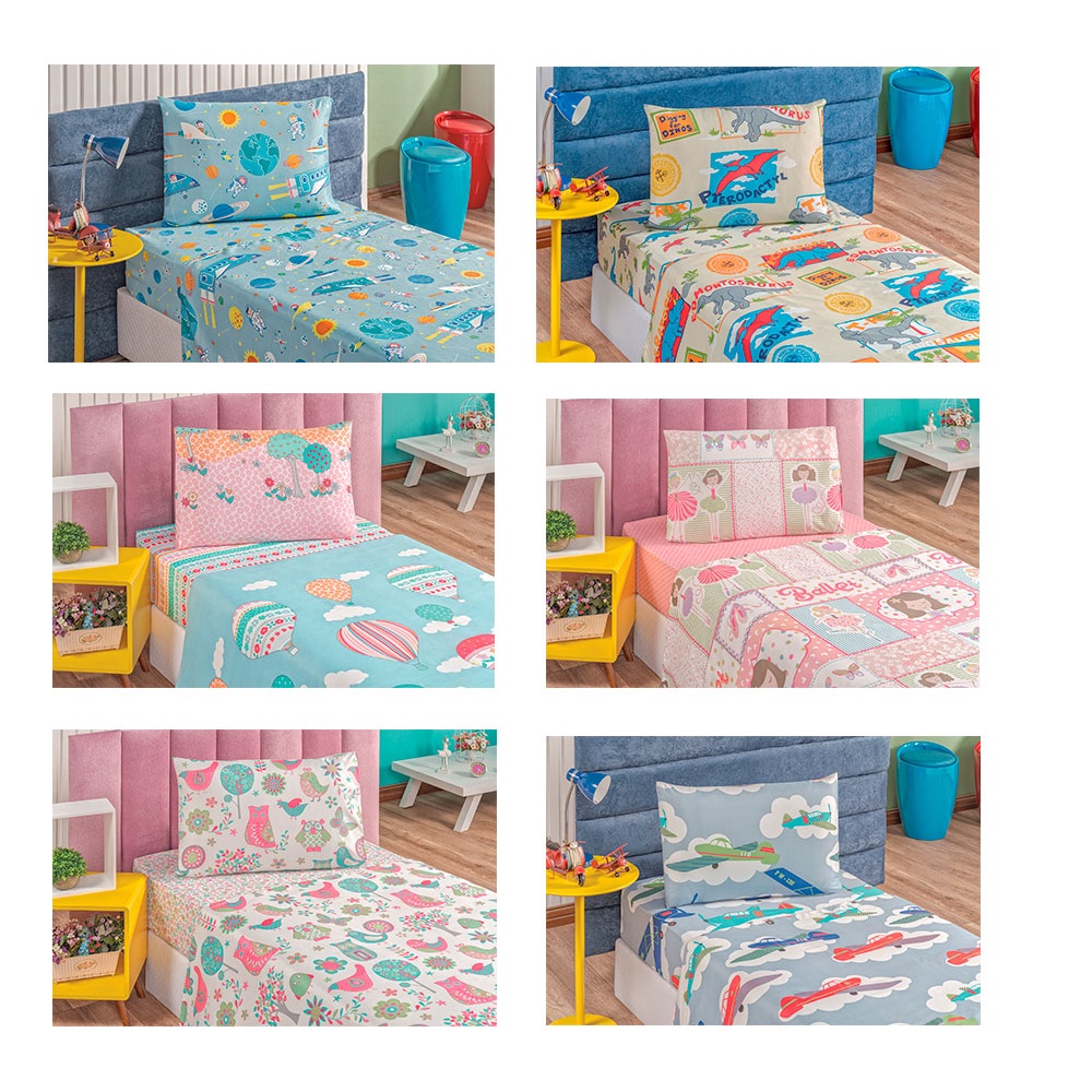 Jogo de Cama Solteiro Kids Infantil Menino e Menina Estampados (Lençol com Elástico + Fronha)