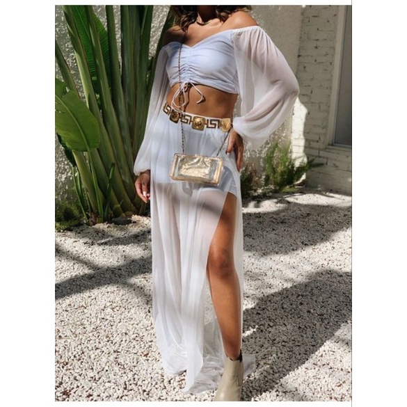Saia Hot Longa Chiffon TRANSLÚCIDA sem forro fendas laterais/fantasia/traje/blogueira/praia/piscina/dança do ventre/rave