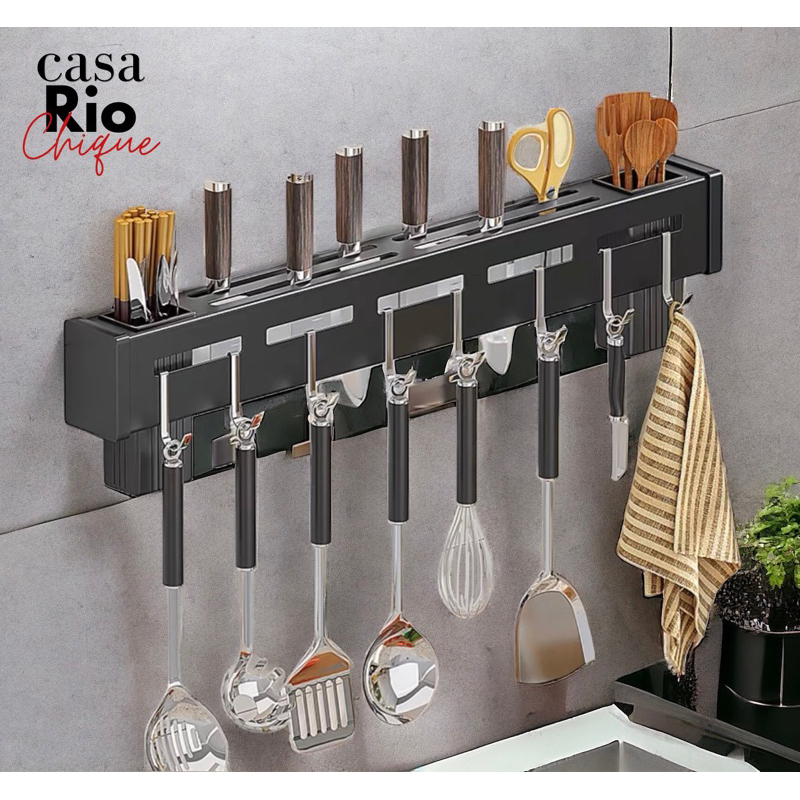 Organizador Multiuso em Aço Inoxidável Porta Utensilios Domesticos Faca e Talheres Suporte com Ganchos para Montagem Na Parede Rack De Armazenamento De Cozinha