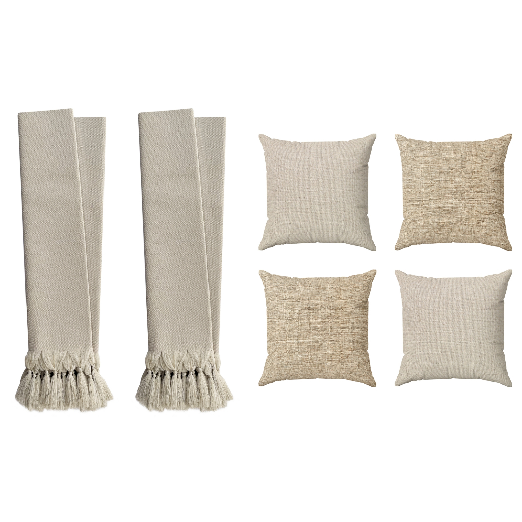 Kit 4 Capas De Almofadas Decorativas Premium 45x45 C/ Zíper + Manta Sofá Bege Cru