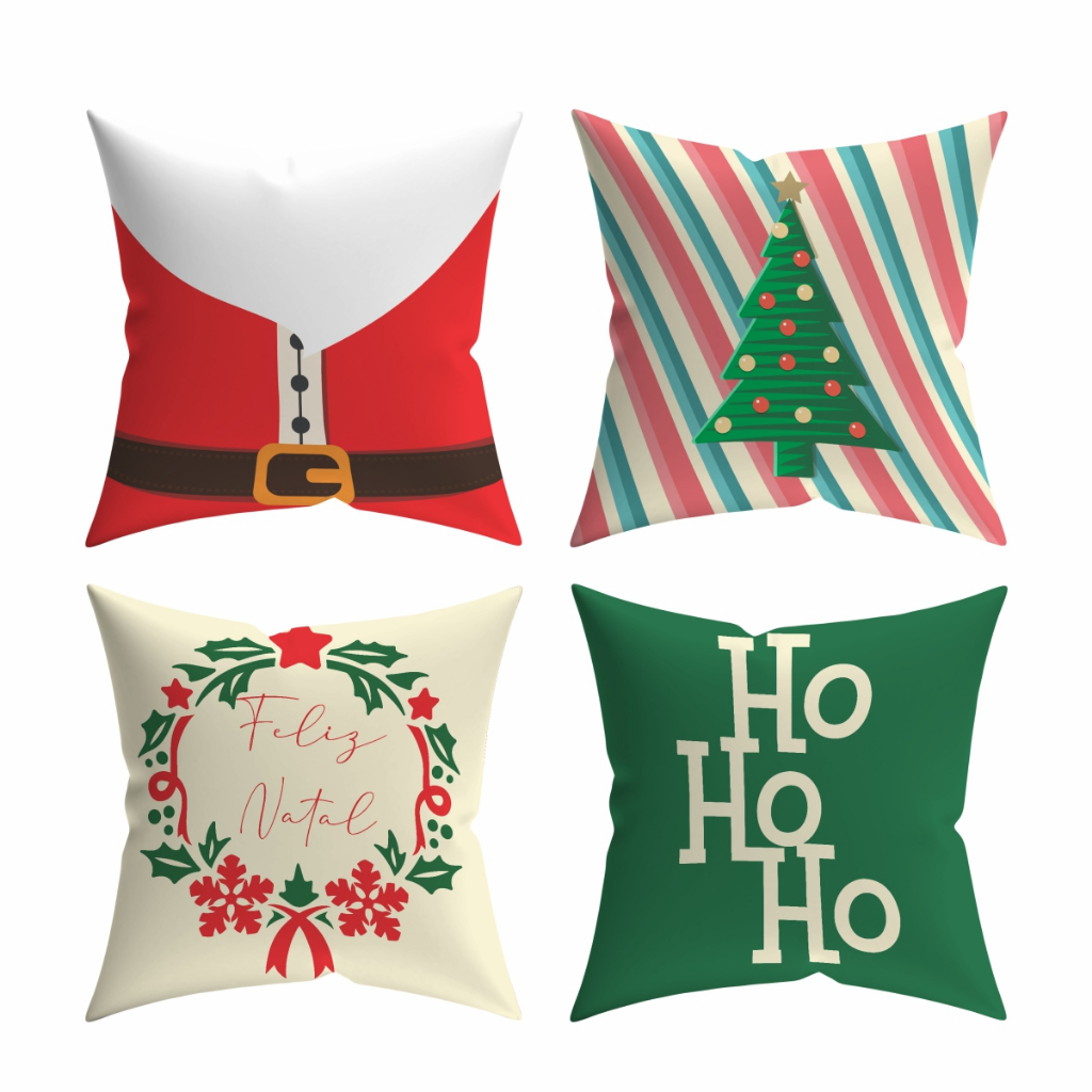Kit 4 Capas De Almofadas Decorativas Natalinas 45x45 Natal Com Zíper Moderna Estampada Luxo