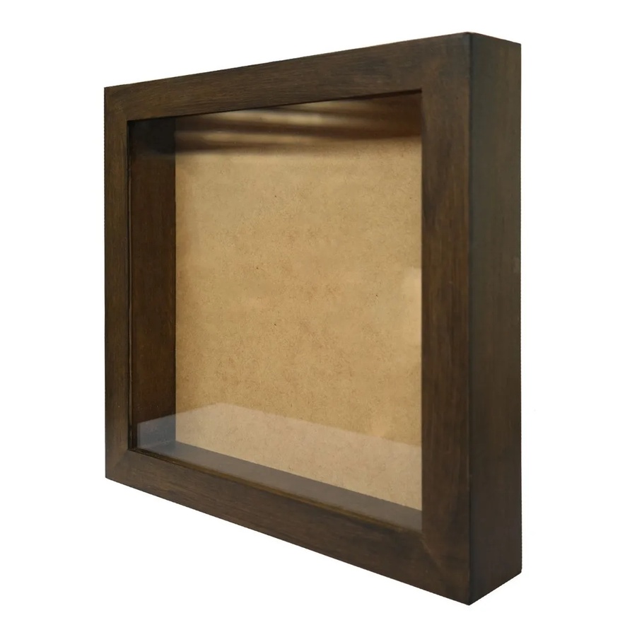 Quadro Moldura Caixa Alta Nogueira 30x30cm Com Vidro