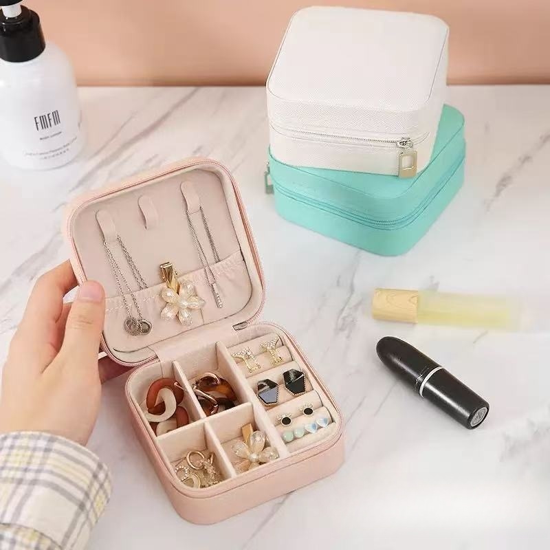Porta Jóias de Bolsa Mini para Viagem Portátil Caixinha de Jóia Anel Colar Brincos