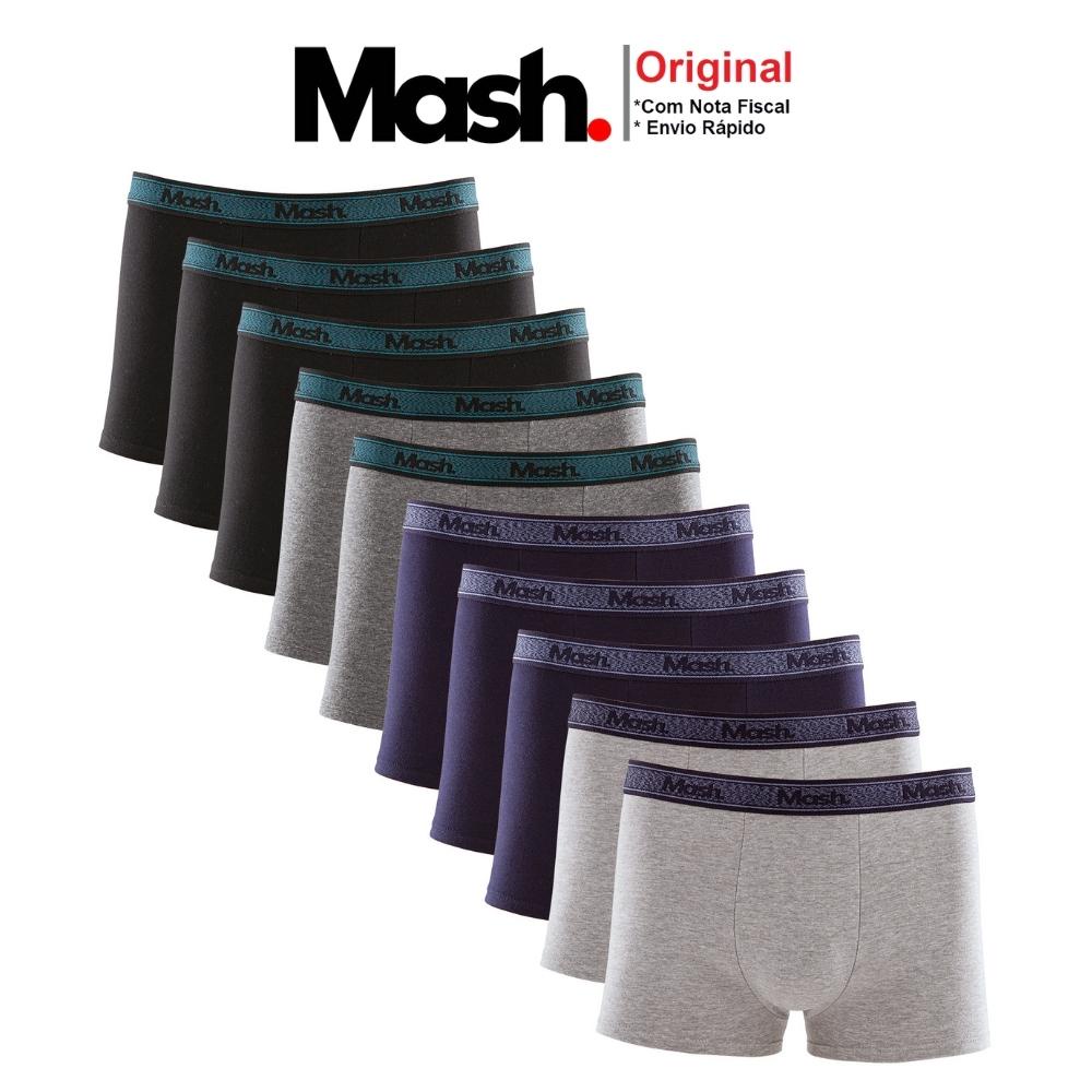 Kit com 10 Cuecas Mash Boxer box Modelo Tradicional em Cotton Algodao Original Masculina