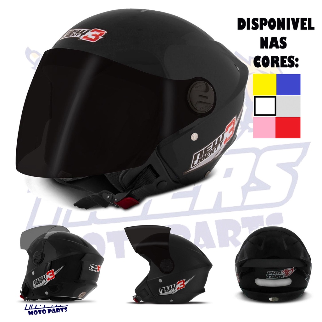 CAPACETE NEW LIBERTY TREE COM VISEIRA FUME Aberto Pro Tork Barato Preto Fosco Vermelho Branco Azul Rosa Prata Masculino Feminino