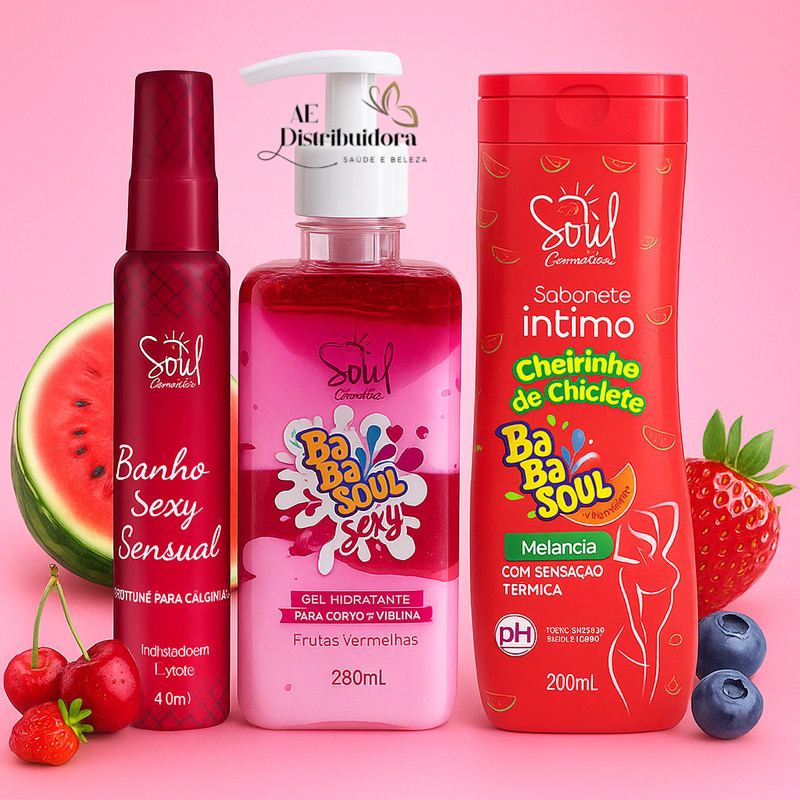 Kit Perfume de Calcinha Sensual + Creme para Virilha Gel Babasoul + Sabonete Íntimo Melancia Soul Apinil