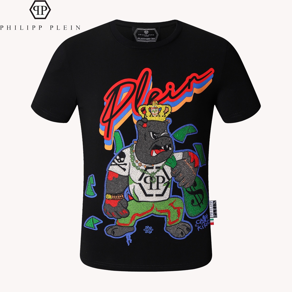 Camiseta PHILIPP PLEIN De Algodão Puro Com Gola Redonda E Estampa De Leão Para Uso Europeu/Americano