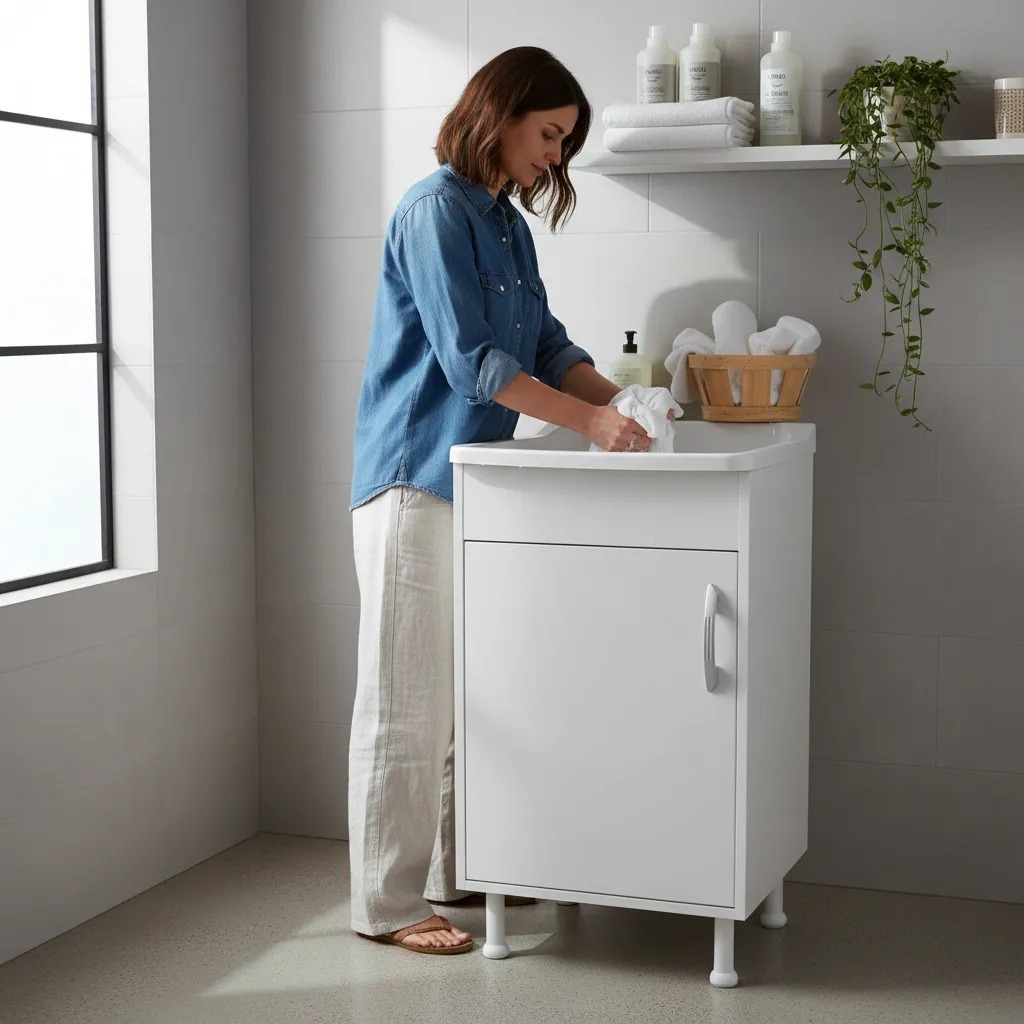 Tanque de Lavanderia com Gabinete 22 L astra com Esfregador mdf com melamínico para Área de Serviço