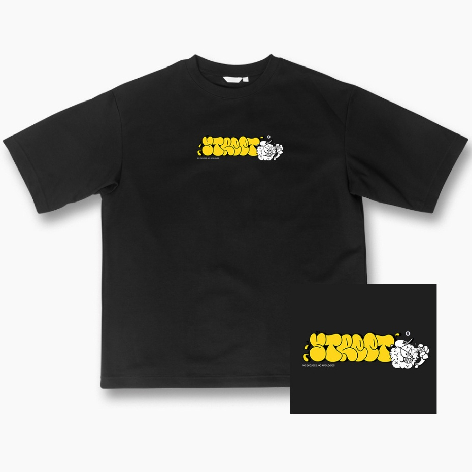 Camiseta OVERSIZED estampada blusa camisa Streetwear em algodão 30.1 modelo letras amarelas Premium OVERSIZED