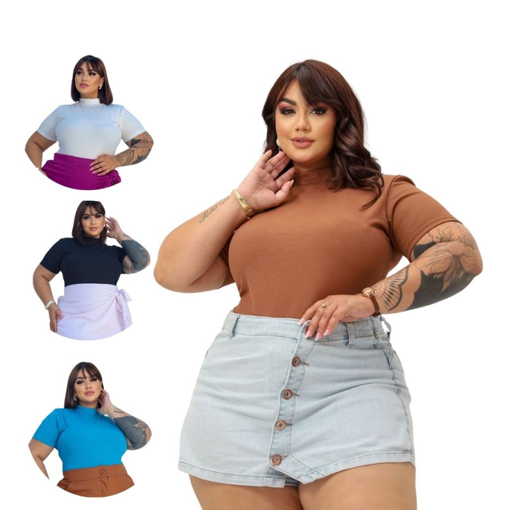 Body Feminino Plus Size Blusa Manguinha Bori Tendencia Elegante Bore Ribana Confortável Manga Curta Verão Moda Evangelic