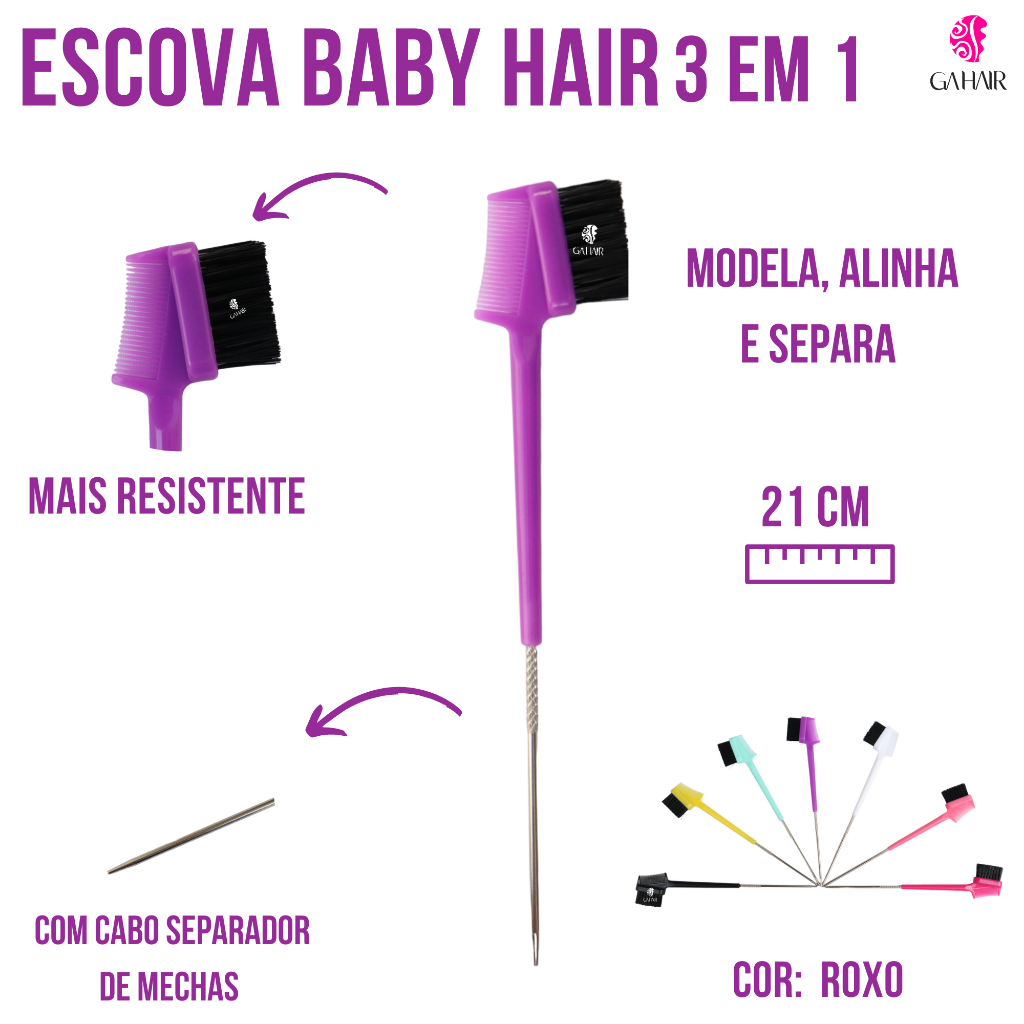 Pente /Escovinha Para Manusear Baby Hair 3 em 1 Com Cabo Auxiliar De Aço - Cor Aleatório