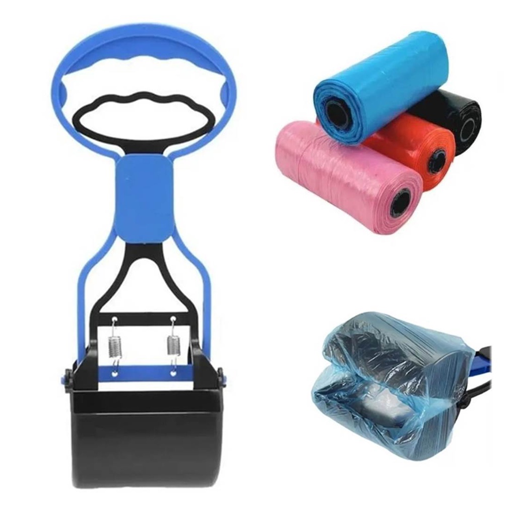 Kit Pá Coletora Pet Pegador de Fezes + 4 Saquinho Cata-Caca Higiênicos Pet
